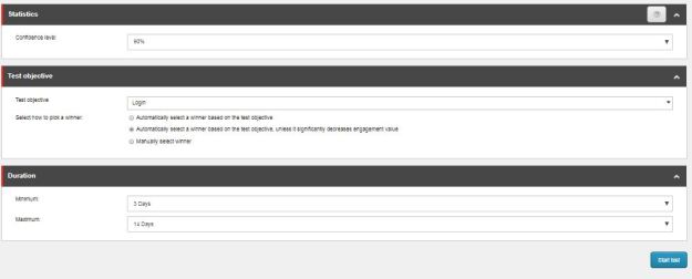 An Information bar: It tells how long the test is expected to be running before it can be declared as a winner.