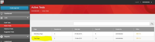 All tests will be displayed in Active Tests as shown below :