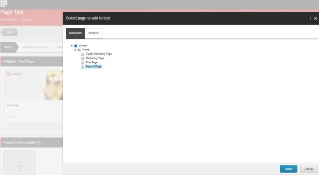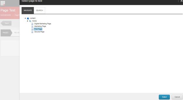 Step 2: Select the original page to test. You can navigate to a page, or you can search for it as shown in below: